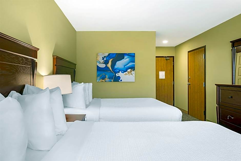 This suite has a bedroom, containing a queen size bed, and a separate living area with a double size sofa bed. Both the bedroom and living room provide a flat-screen TV. Additional amenities include a microwave, mini fridge and coffee maker.
